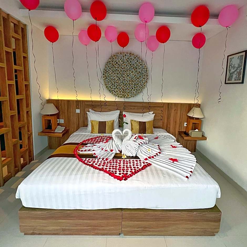 Guest enjoy : - 2 night stay minimum in One Bedroom with Private Pool - Daily Breakfast for 2 people - Honeymoon decorations on the bed & bathtub upon arrival - One-Time floating breakfast with flower decorations - One-time romantic candle light dinner with floating tray " I ❤️ U " decorations for 2 people - One-time 1-Hours balinese massages for 2 people - One-way airport pickup transfer